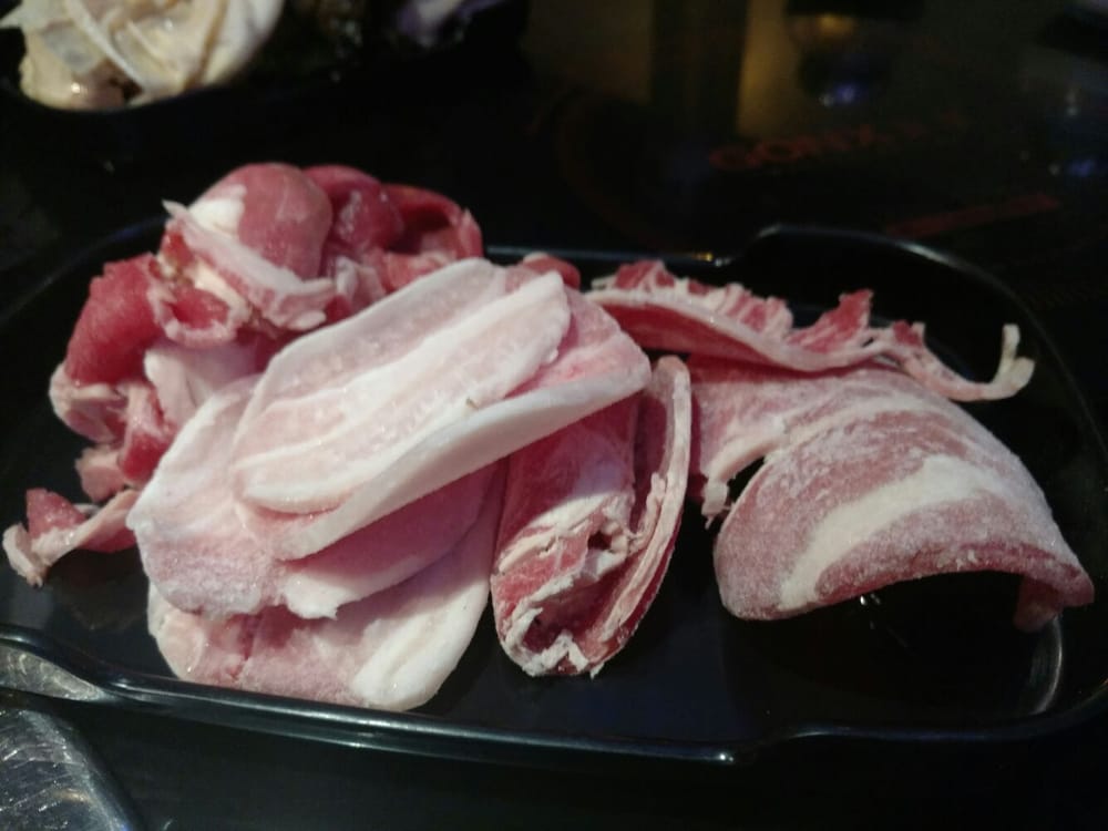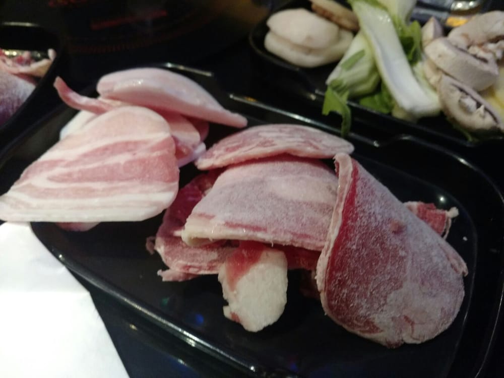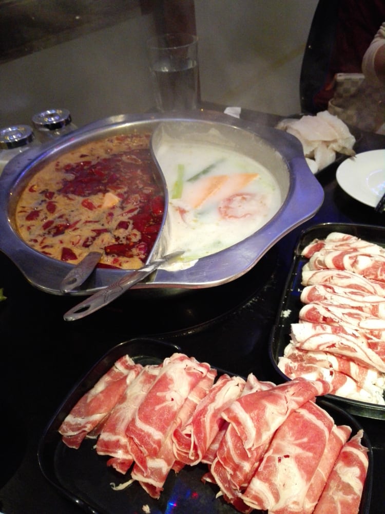 Spicy pork ham sausage, tofu, kimchi, ramen noodles. Spicy.